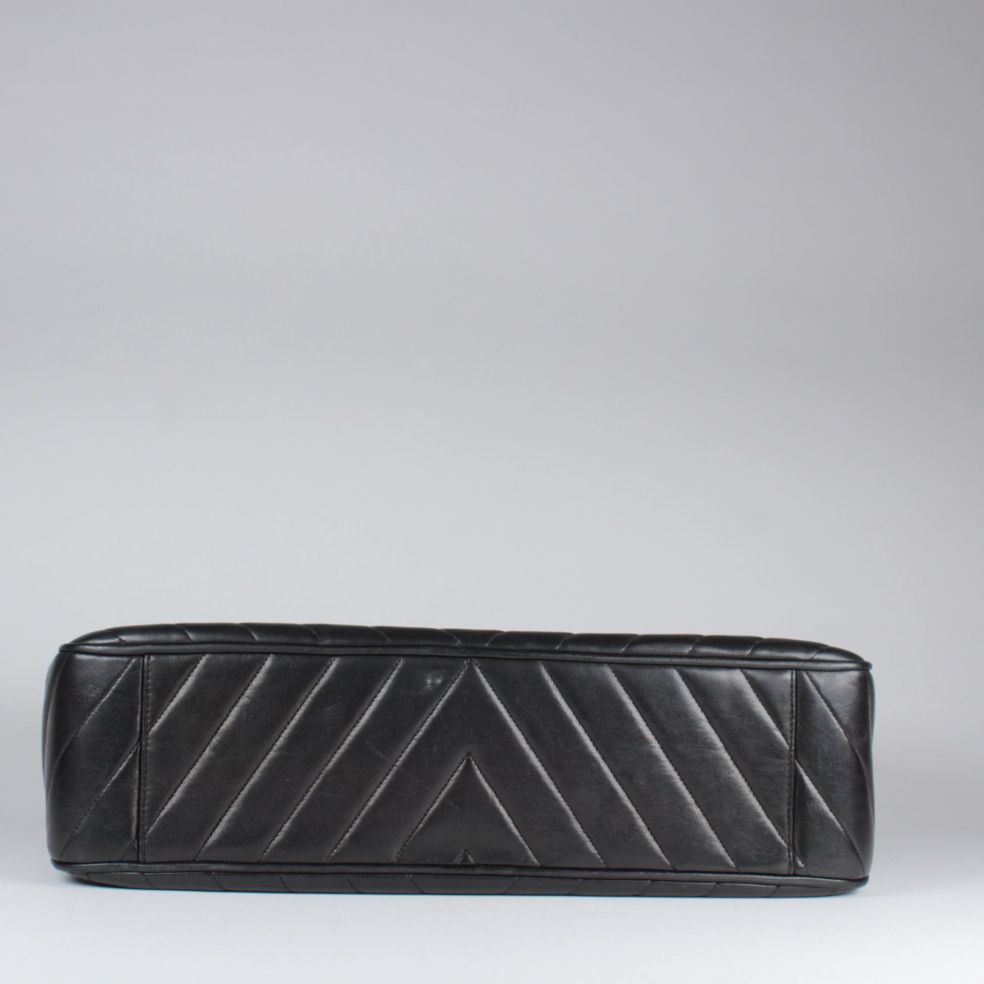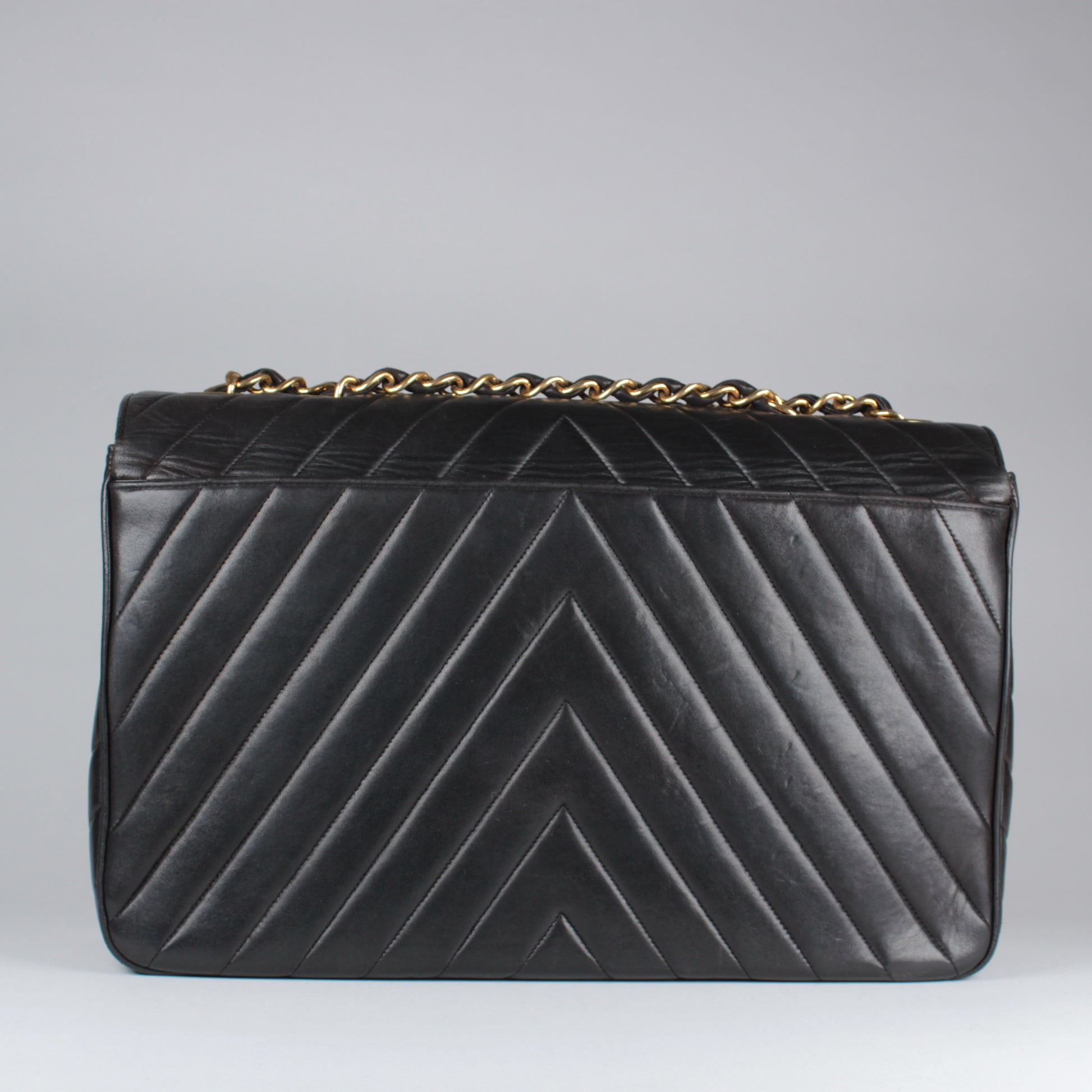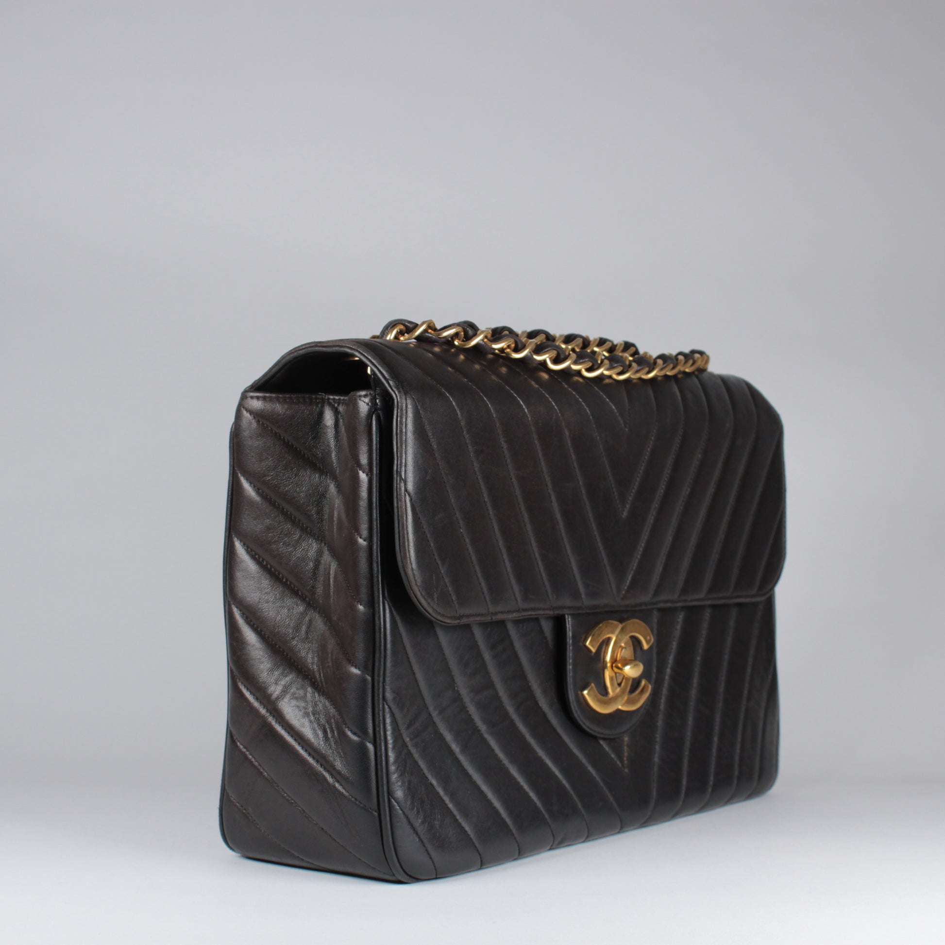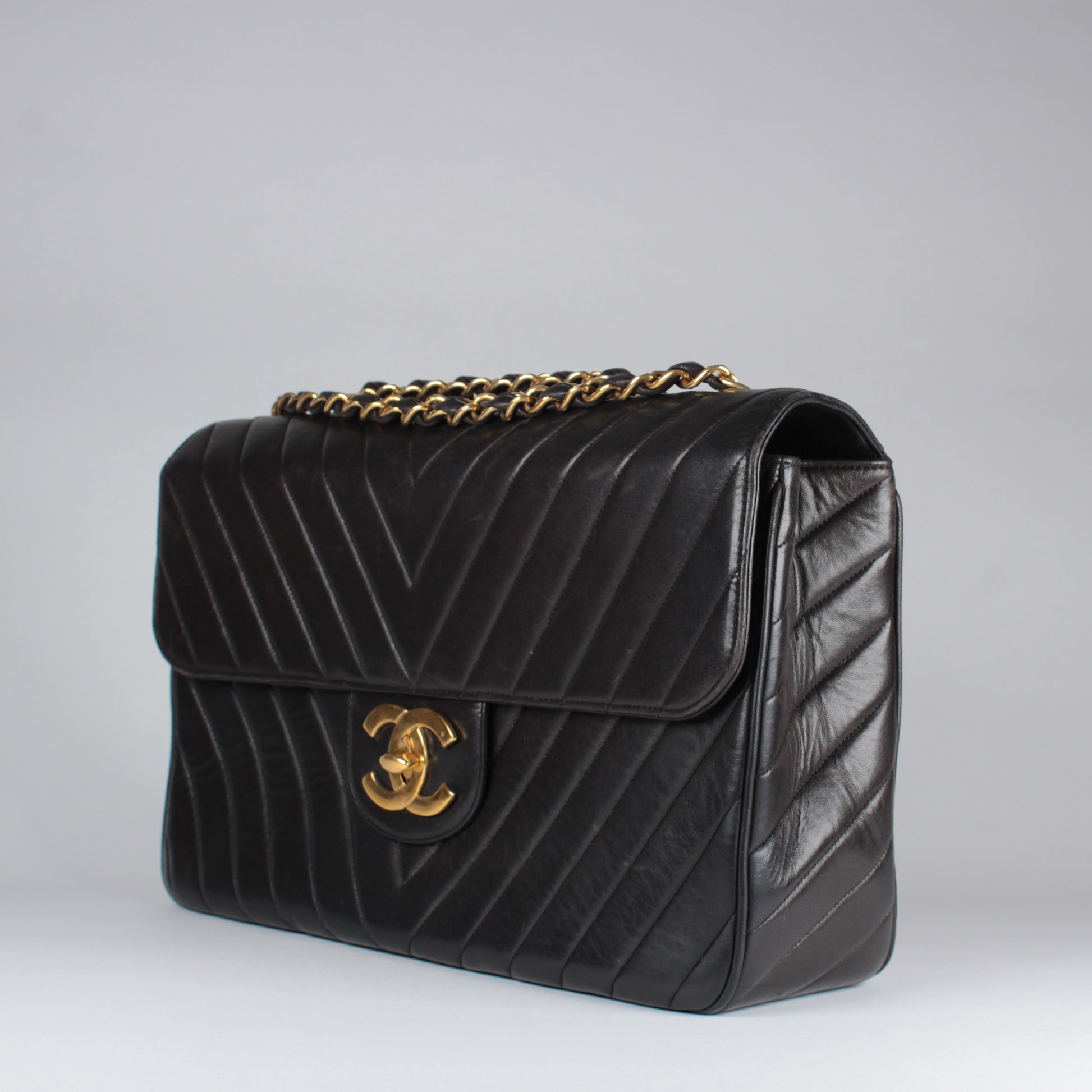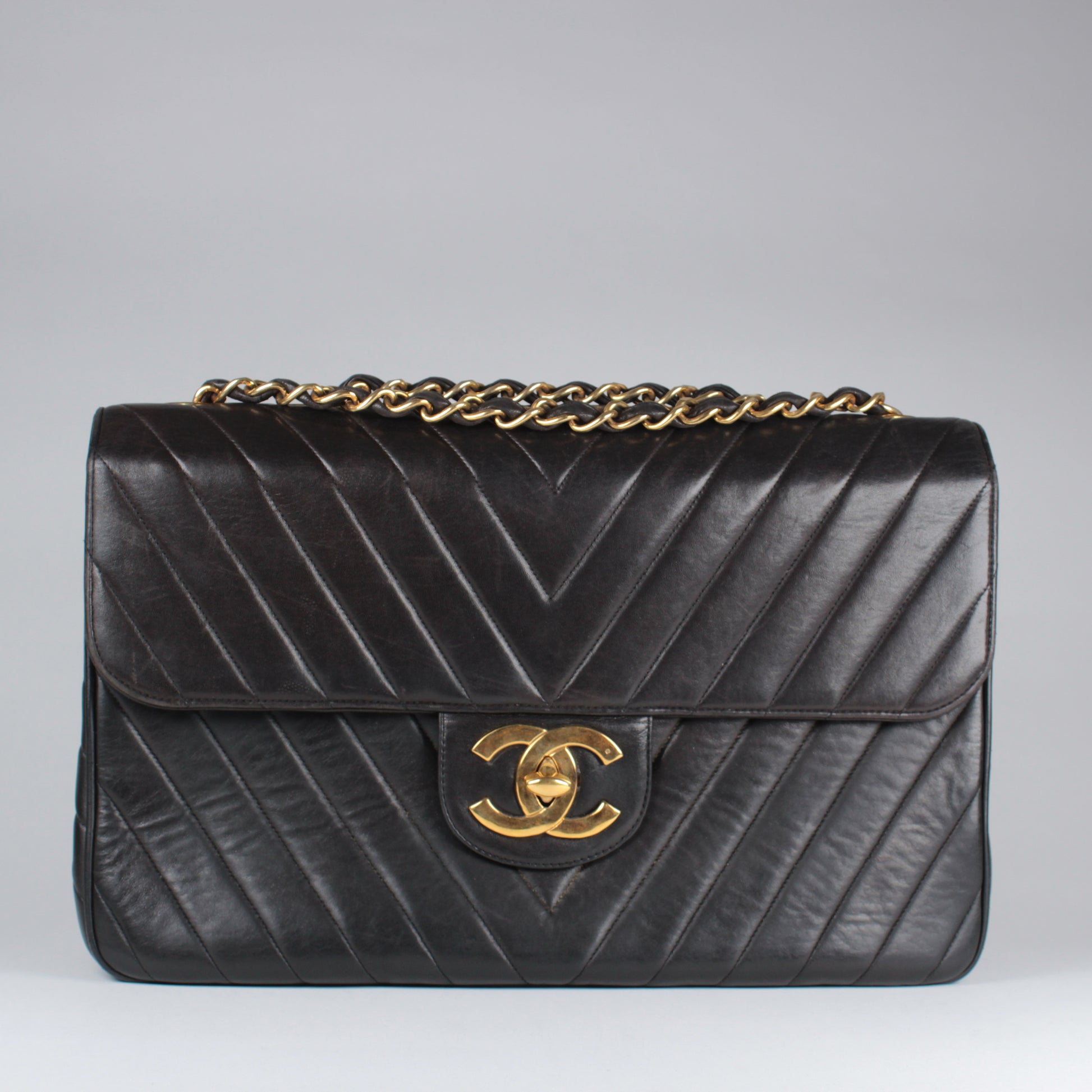 Noteworthy Features: Chevron quilting, signature CC turn-lock closure, burgundy leather interior, and leather-interwoven chain strap