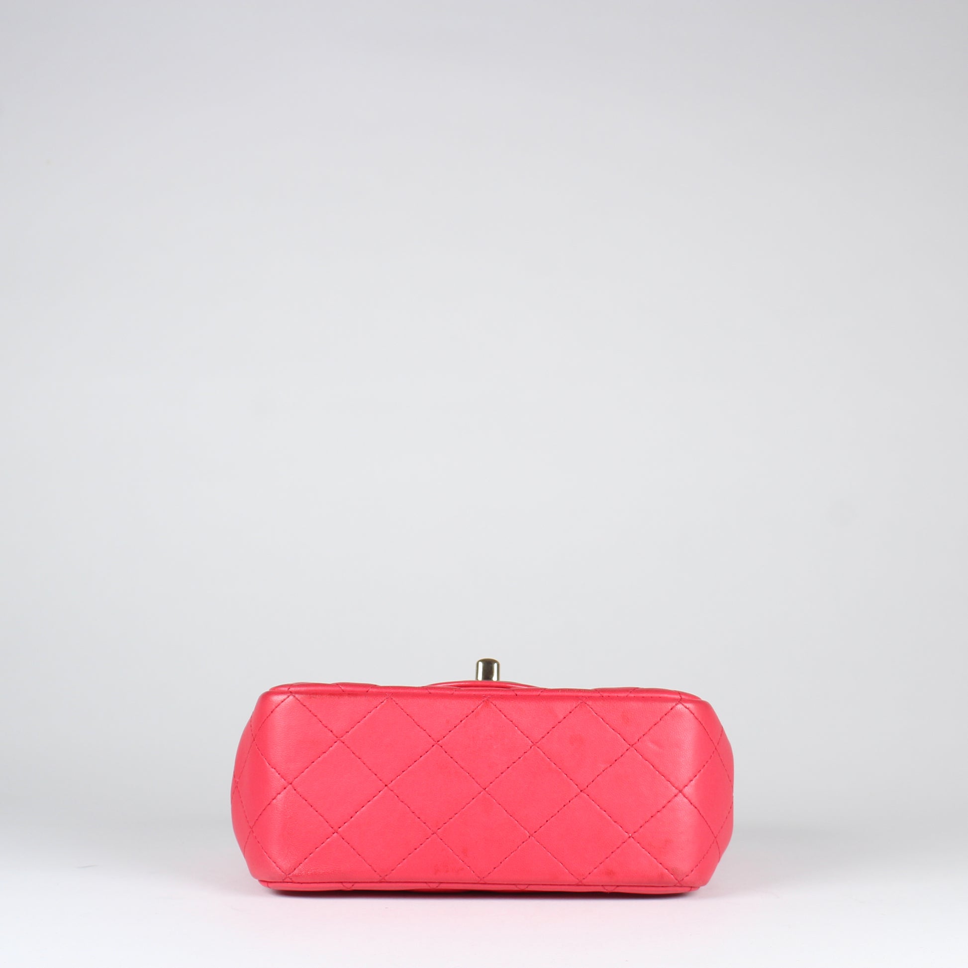 Noteworthy Features: Chanel Mini Square Flap with CC turn-lock closure and leather-threaded chain strap
