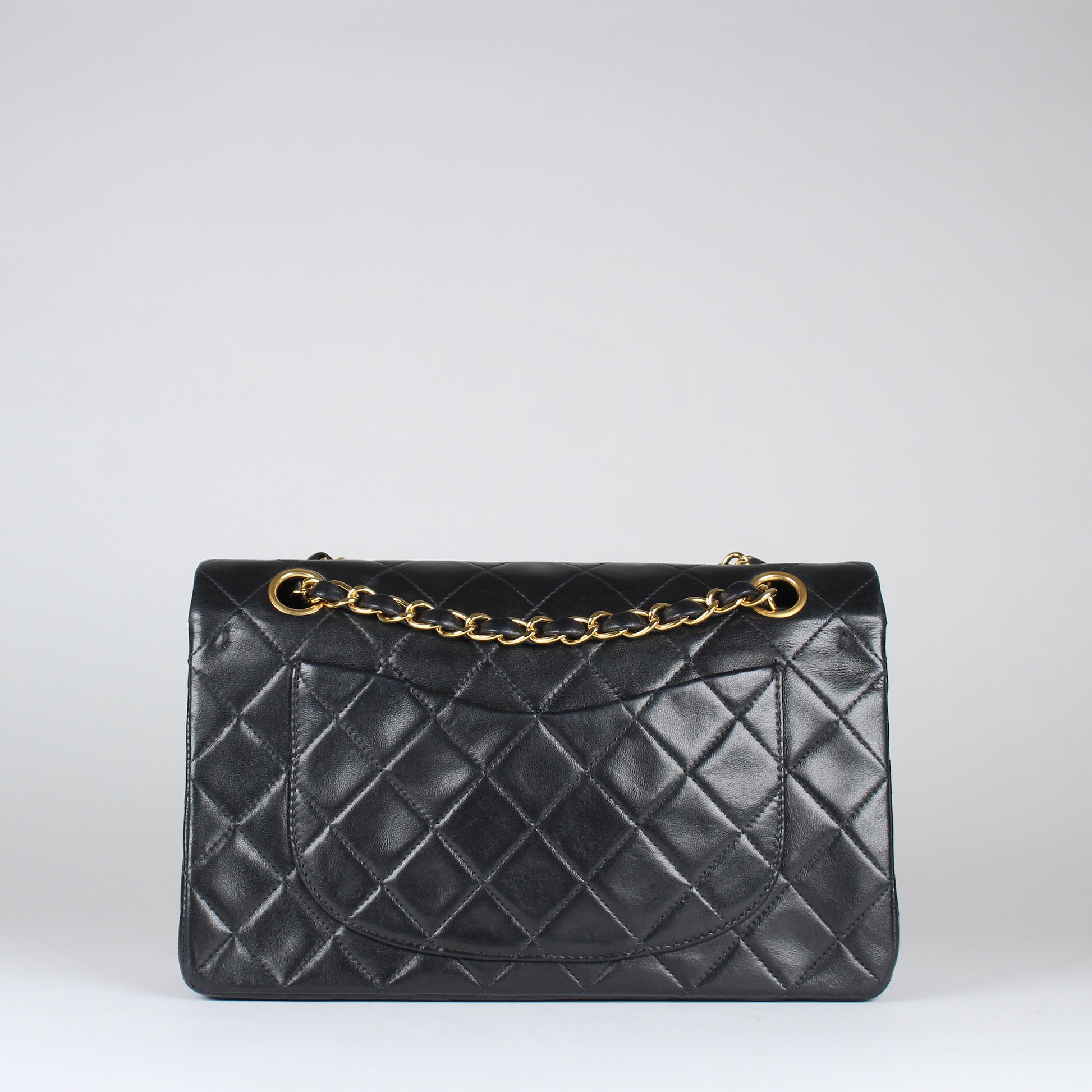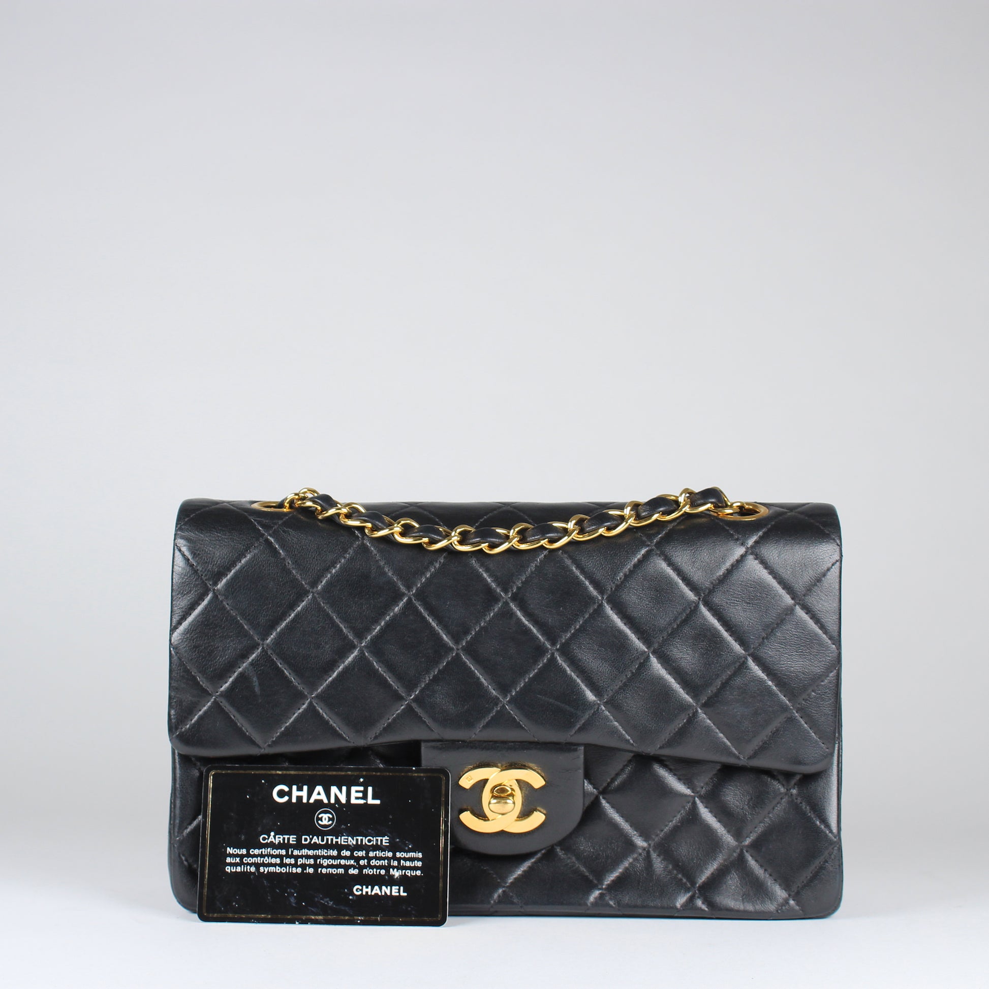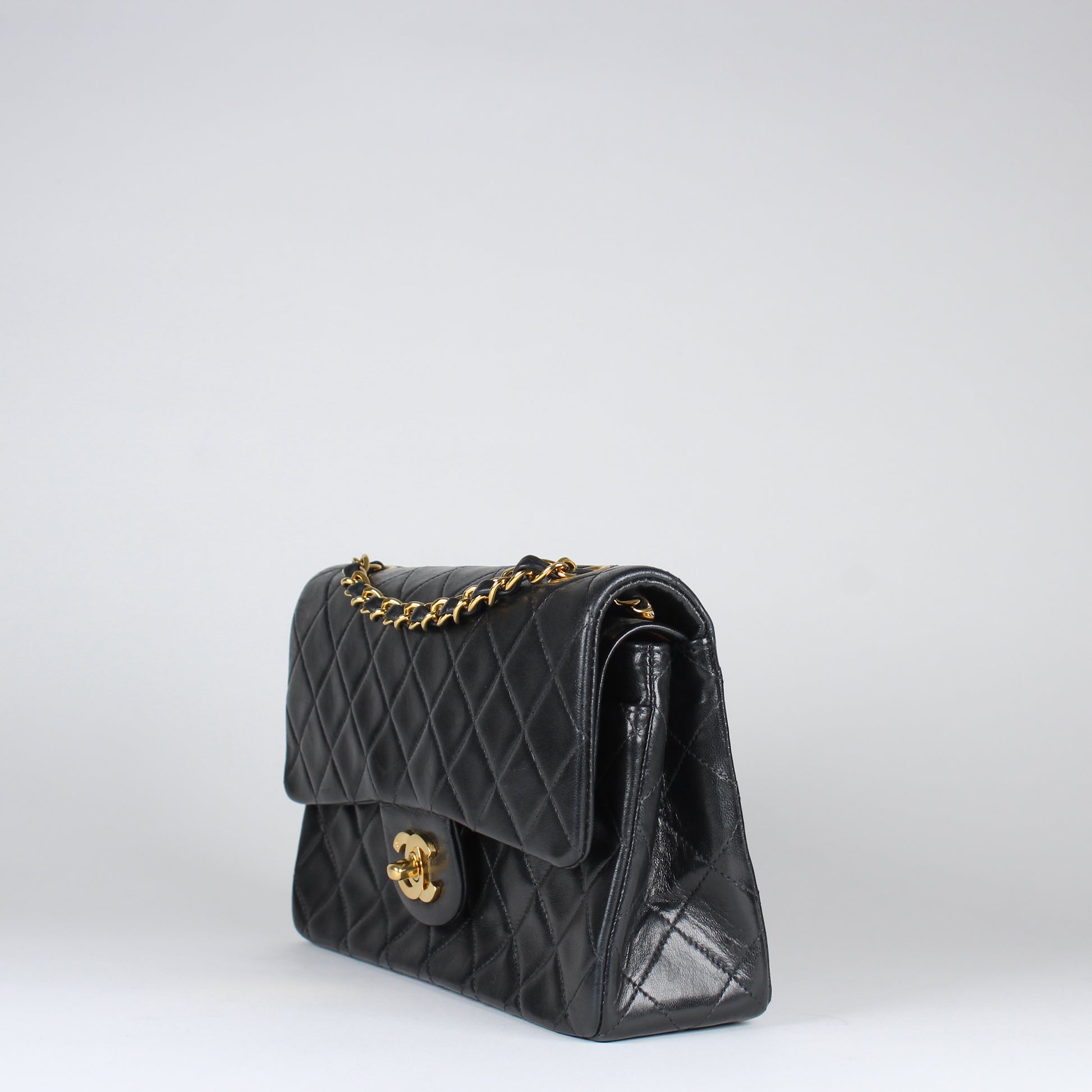 Noteworthy Features: Small Classic Double Flap Bag with 24K gold-plated hardware and burgundy leather interior — an exceptional vintage example showcasing timeless Chanel craftsmanship and elegance