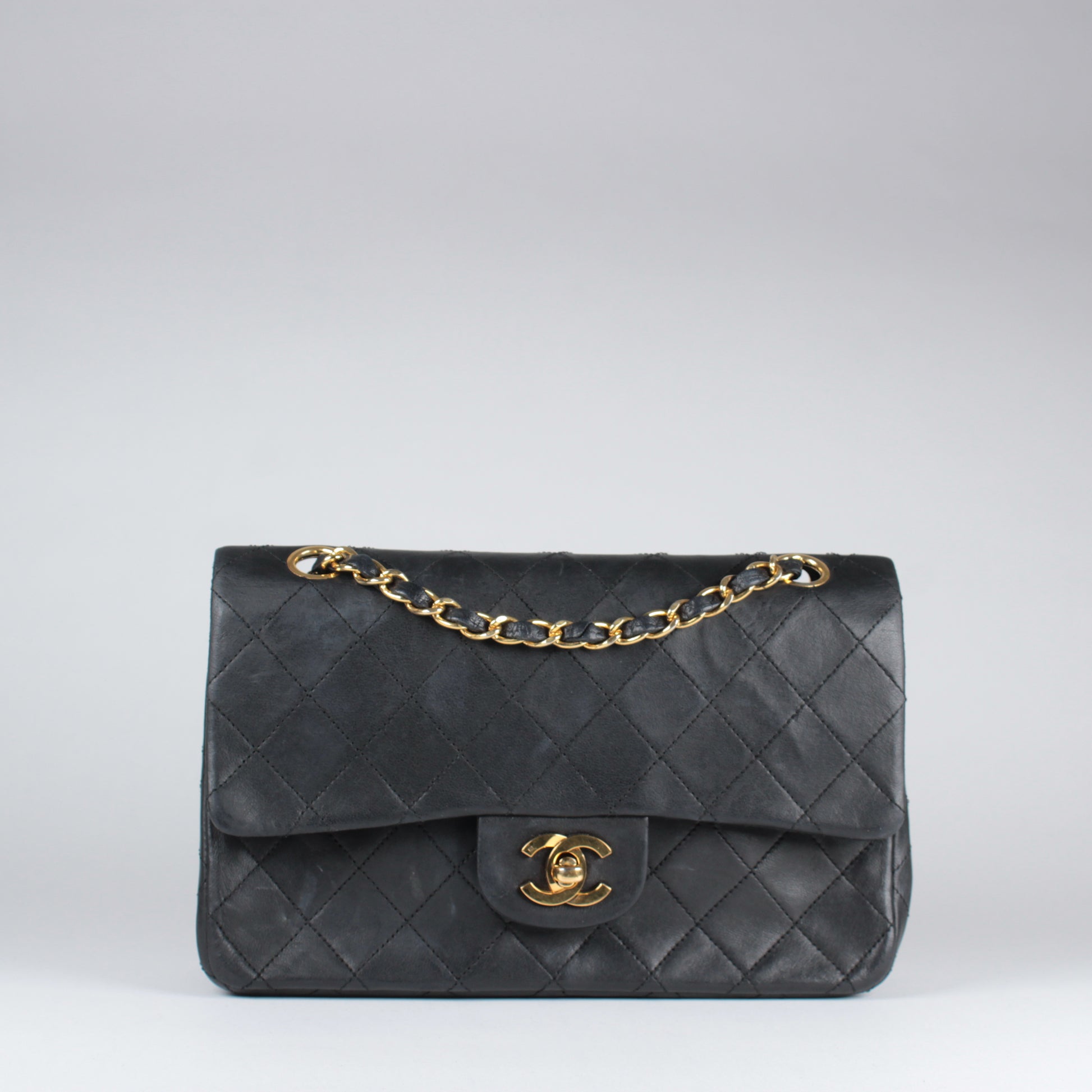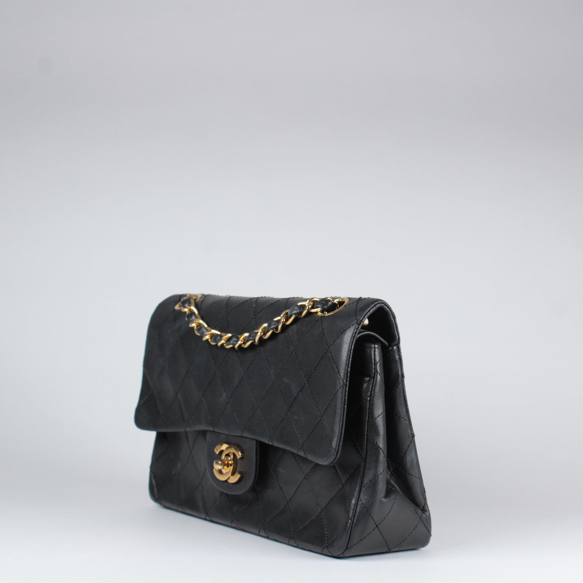Noteworthy Features: Small Classic Double Flap Bag with 24K gold-plated hardware and burgundy leather interior - an exceptional vintage example showcasing timeless Chanel craftsmanship and elegance