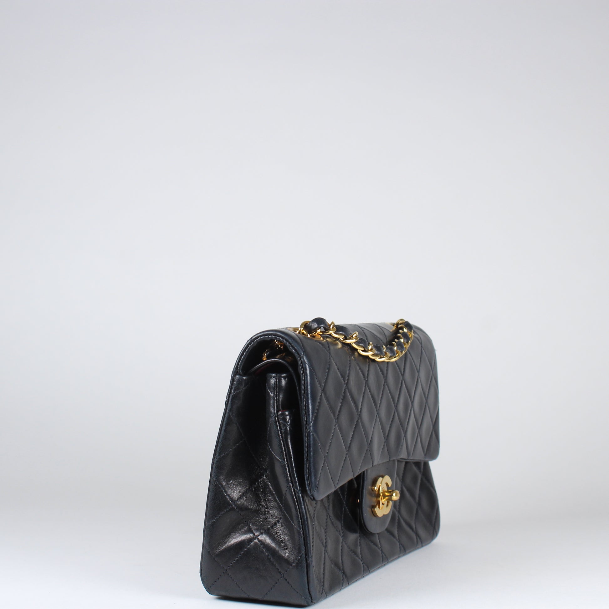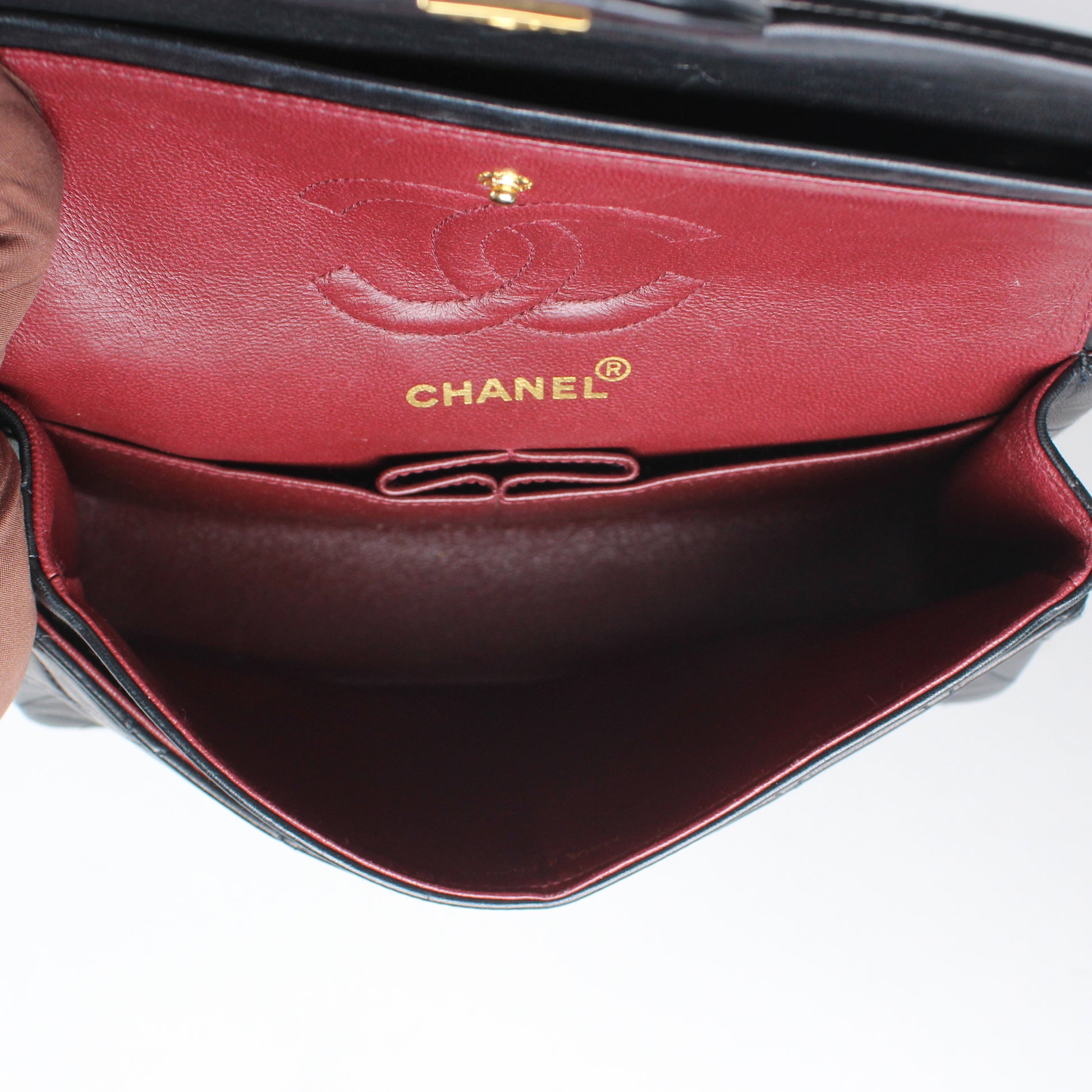 Noteworthy Features: Small Classic Double Flap Bag with 24K gold-plated hardware and burgundy leather interior — an exceptional vintage example showcasing timeless Chanel craftsmanship and elegance