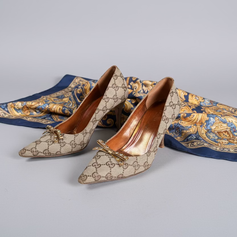 Condition- Vintage condition. With general wear to the whole shoe, giving a very chic vintage appearance.