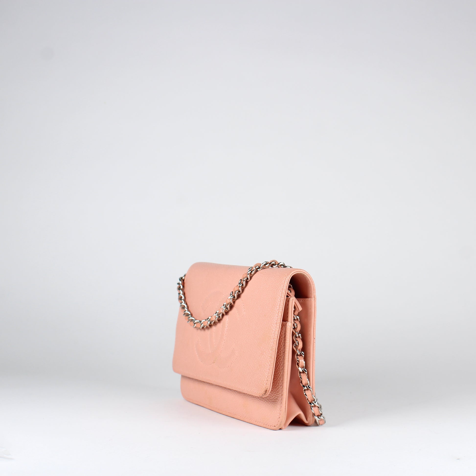 Noteworthy Features: Embossed CC logo on front flap with chain-leather strap