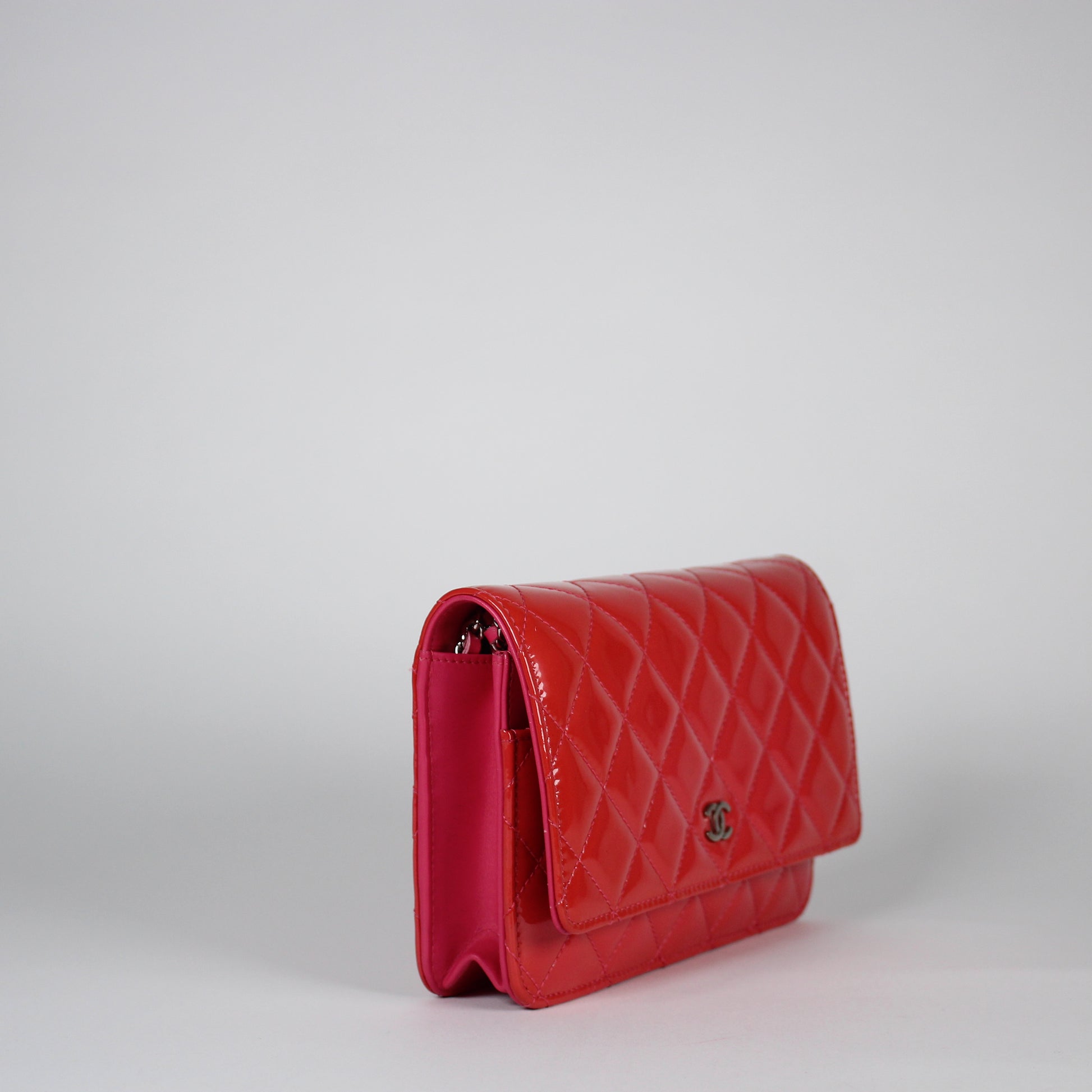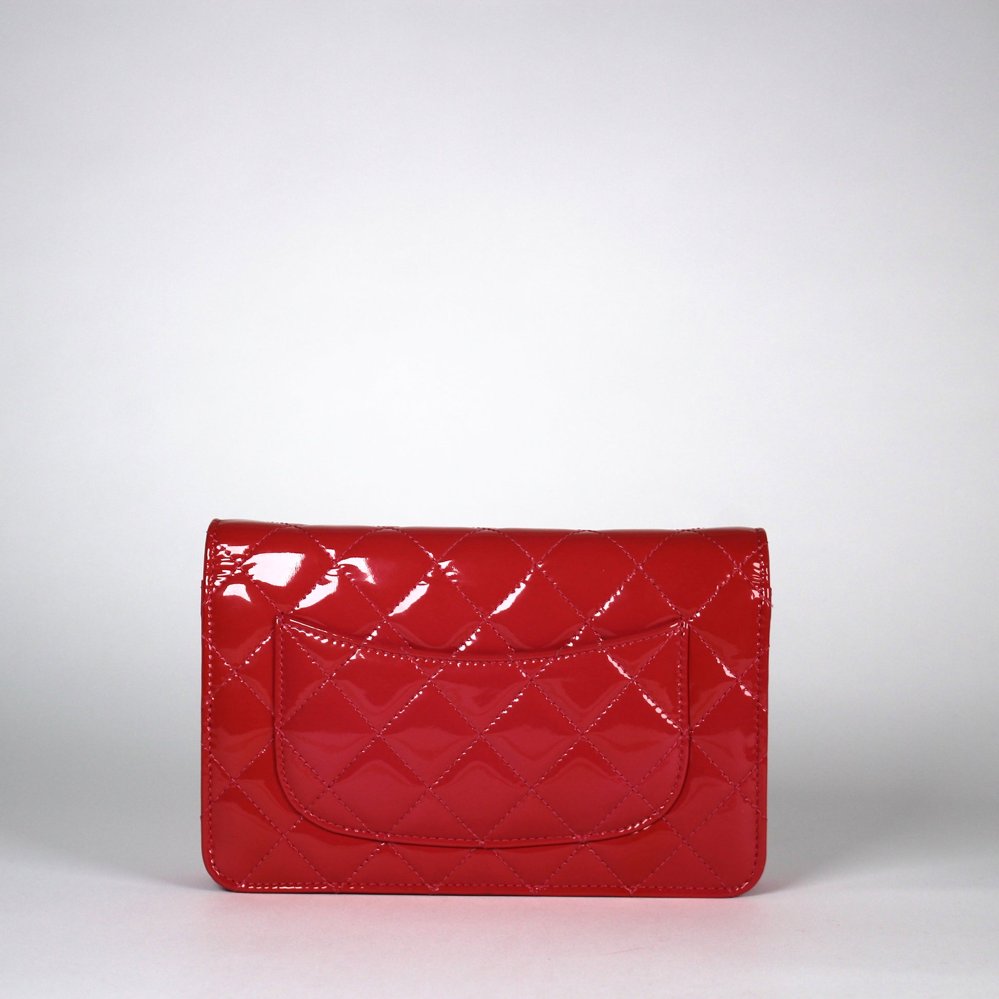 Noteworthy Features: Classic Chanel Wallet on Chain design with diamond quilting, CC logo clasp, and glossy patent finish