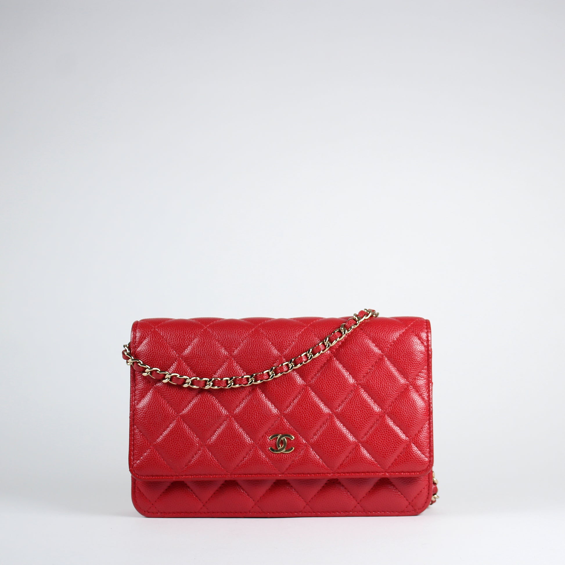 Noteworthy Features: Classic Chanel Wallet on Chain with diamond quilting, CC logo, and chain-leather crossbody strap