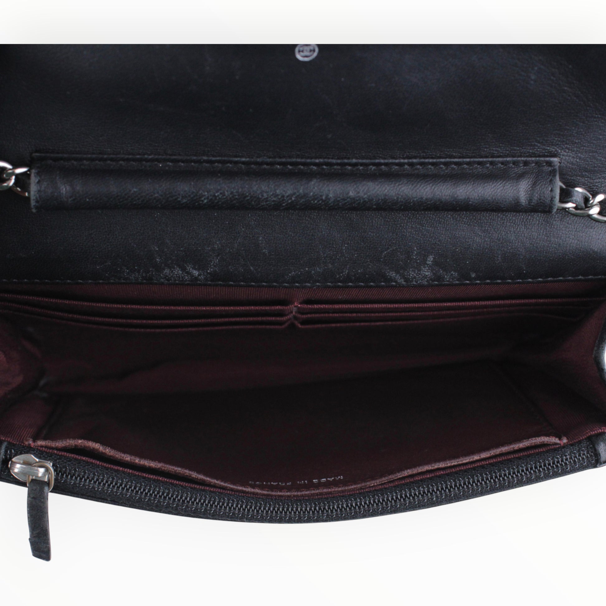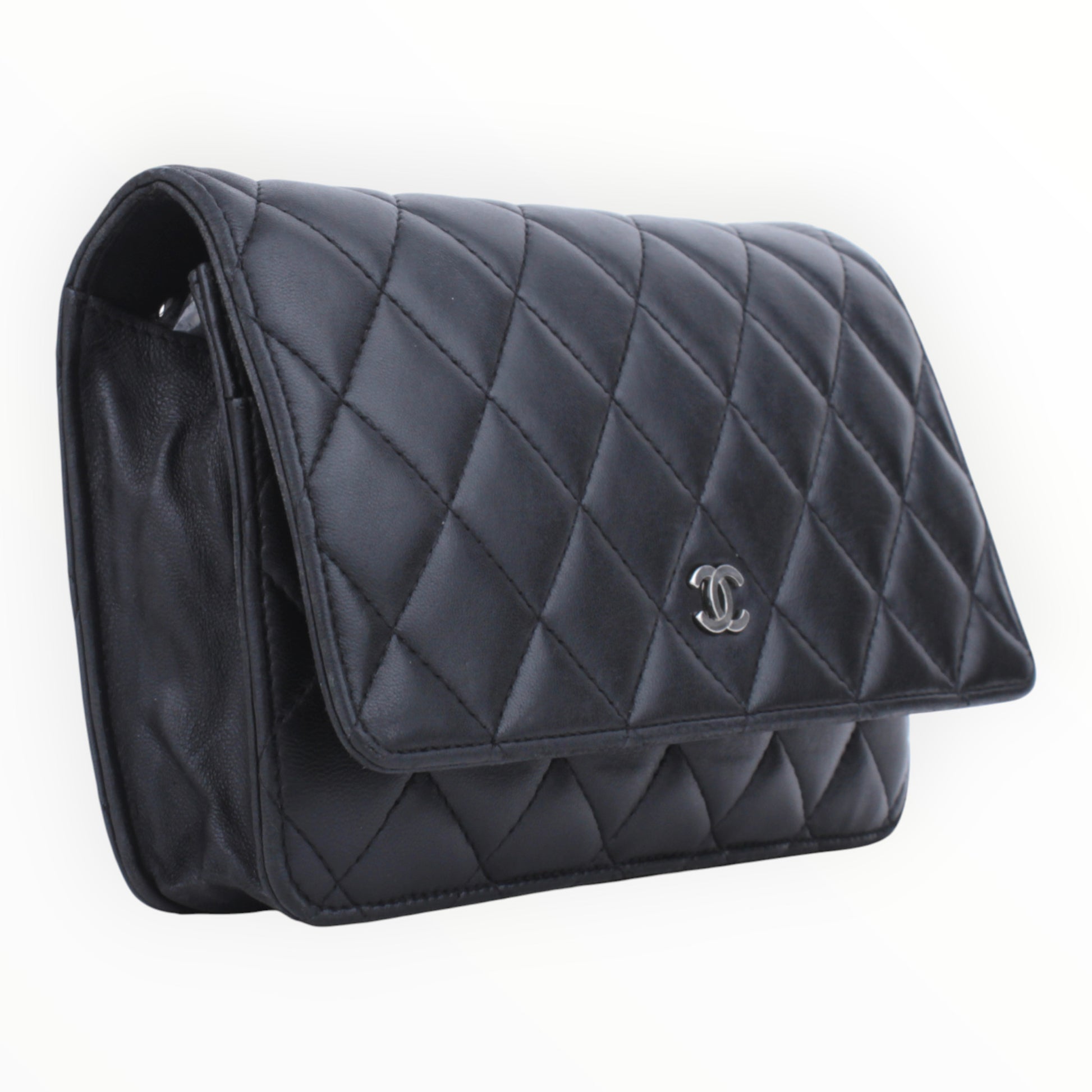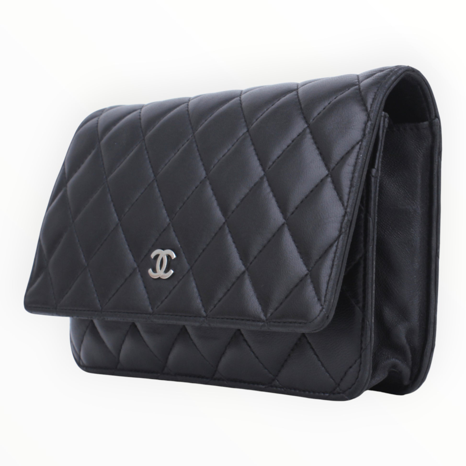Noteworthy Features: Classic Wallet on Chain silhouette featuring signature diamond quilting, a small silver-tone CC logo on the front flap, and a versatile leather-intertwined chain strap.